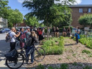We then listened to Jacques Lebleu, an Ahuntsic resident and ACeT representative for Mobilisation environnement Ahuntsic-Cartierville (MEAC), dreaming of the possibilities of a “Coulée verte” stretching across the entire neighborhood to enable safe circulation in a green environment. (https://comitemeac.com/)