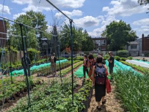 We started the day over coffee at the Au courant vegetable garden supported by Ville en vert. It was an opportunity to discuss Ville en vert and the social and ecological role of the potager for the community. (https://villeenvert.ca/).