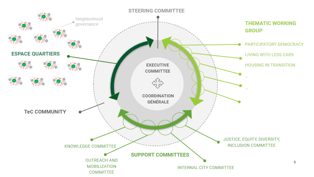 We are organized around thematic bodies, committees and working groups that have the common features of bringing together a diverse representation (institutions, civil society organizations, neighborhood and citizen groups, researchers) and investing in the challenge of co-construction.